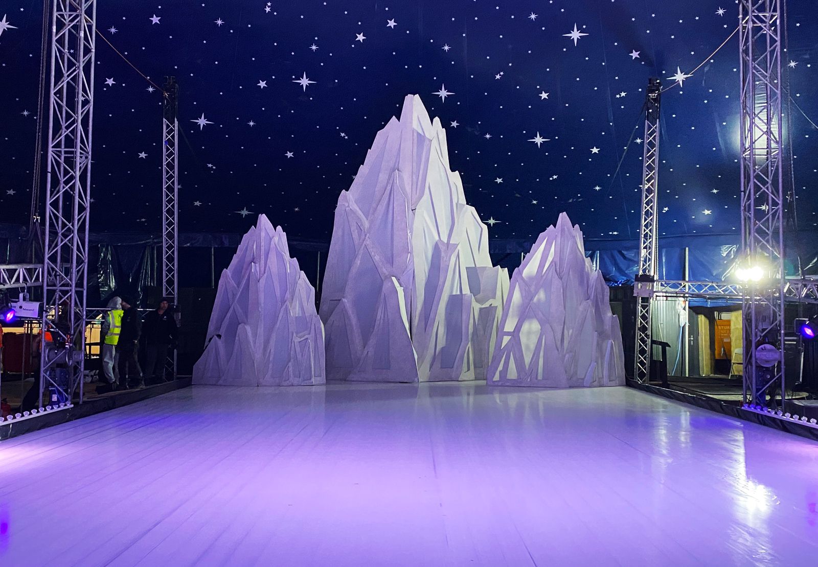 The brief required visually striking, three-dimensional glacier forms that would create an immersive winter environment at the back of the ice arena. These large-scale scenic elements needed to balance aesthetic impact, structural integrity and practical touring capability - all within a tight production schedule ahead of the Winter Wonderland launch.